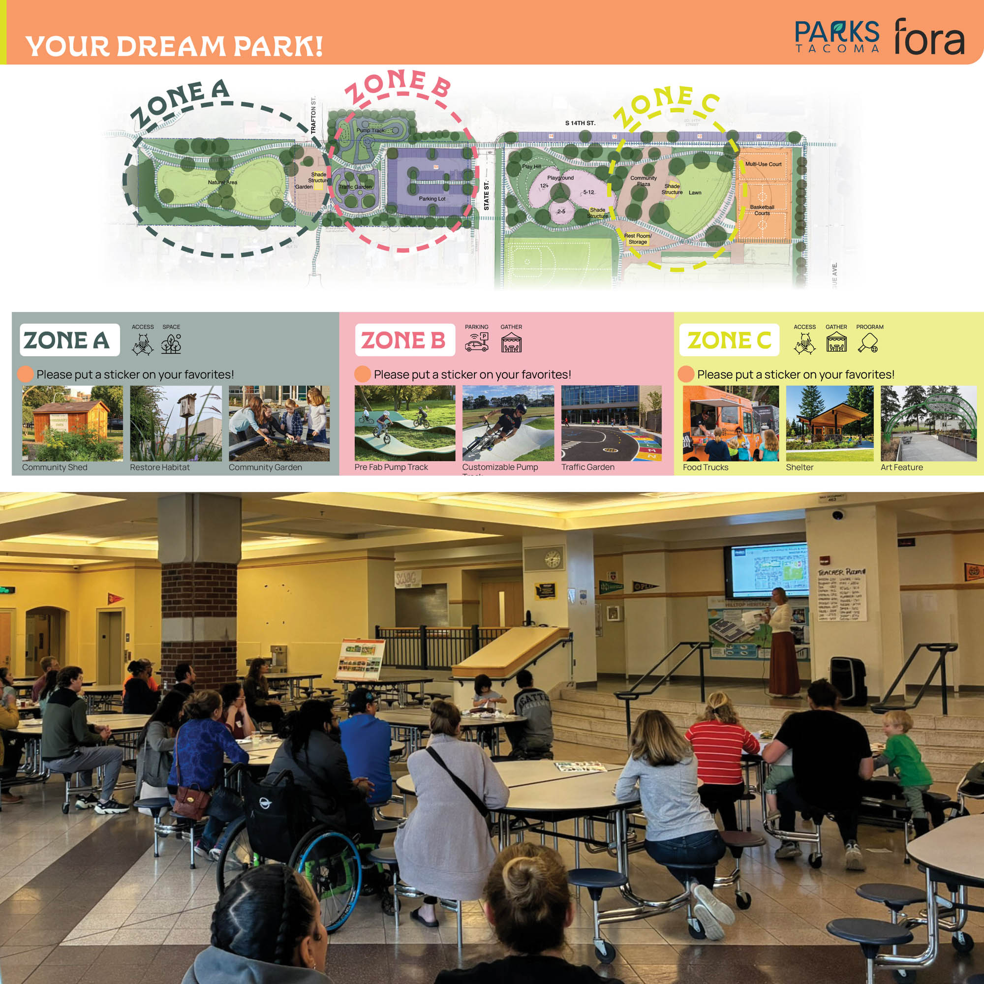 In partnership with Parks Tacoma, Fora led the first community workshop for the redesign of Peck Community Sports Park. Thank…